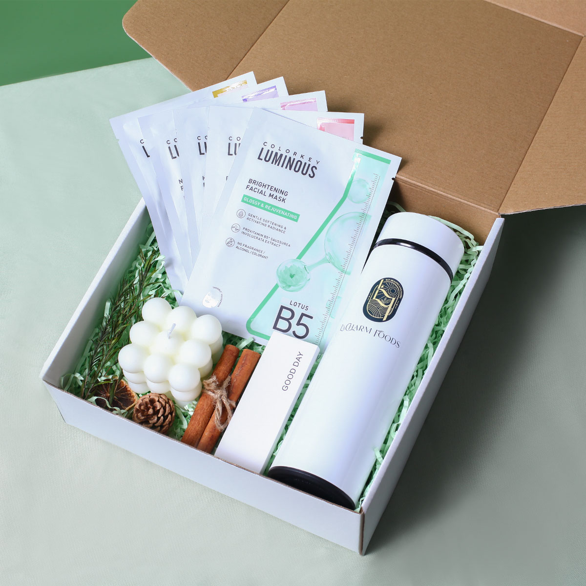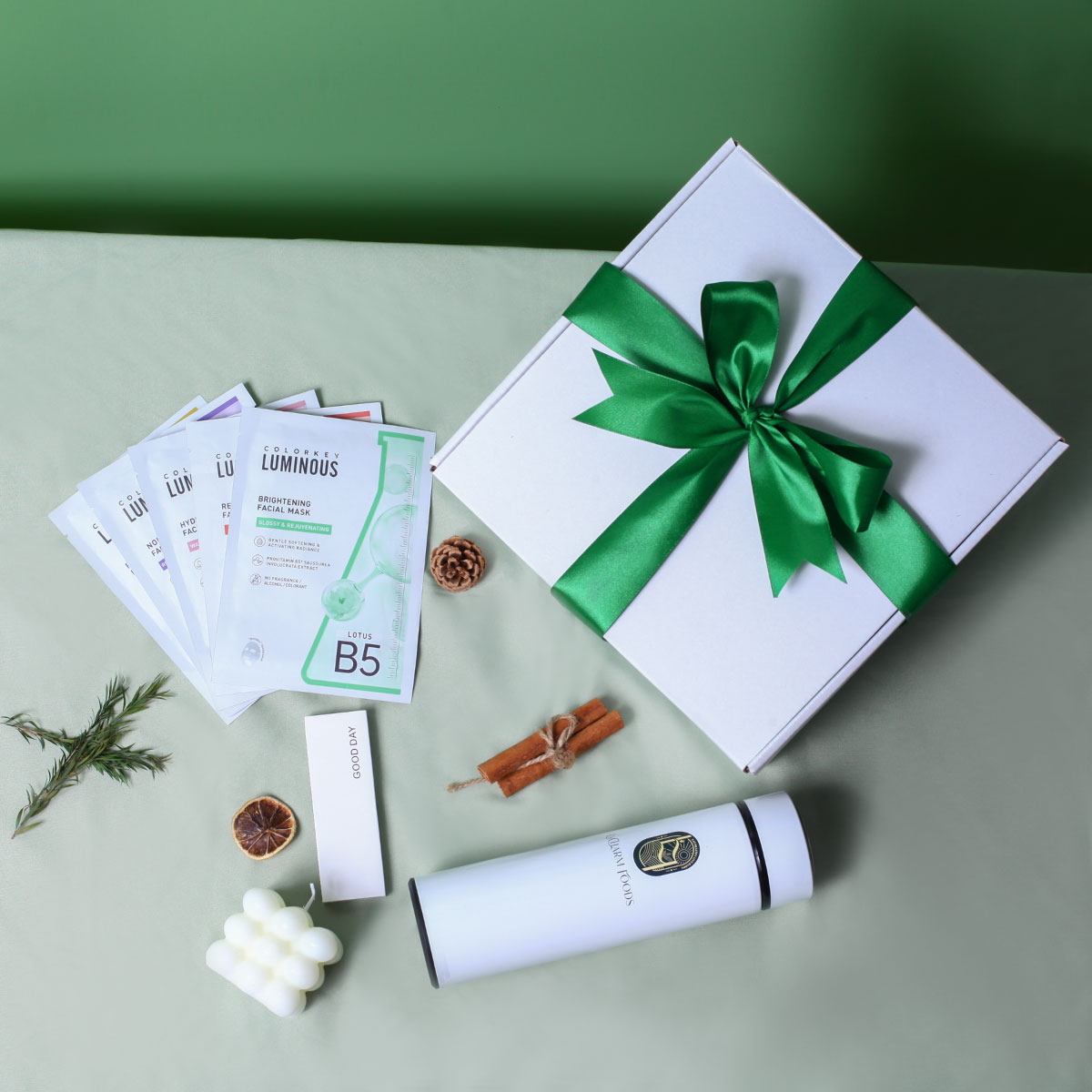 Bình Giữ Nhiệt 300ml | Mặt Nạ Colorkey 5 miếng | Nến Thơm Rubik 160g | Diêm Đốt Nến 1 hộp | Hộp Quà Cao Cấp và Túi Xách Sang Trọng