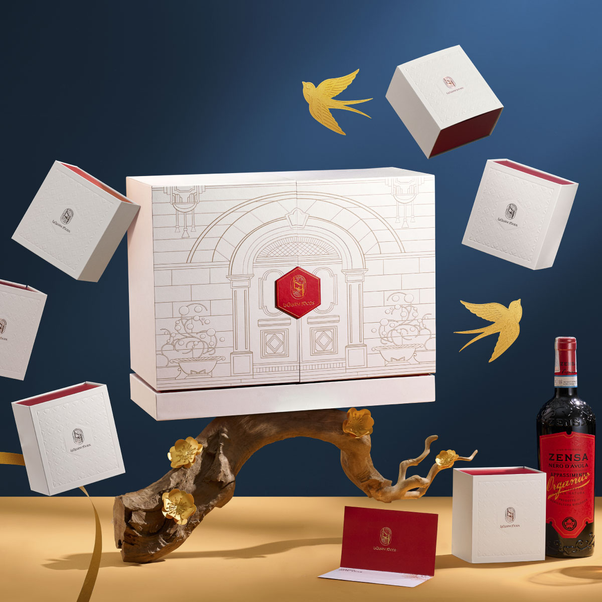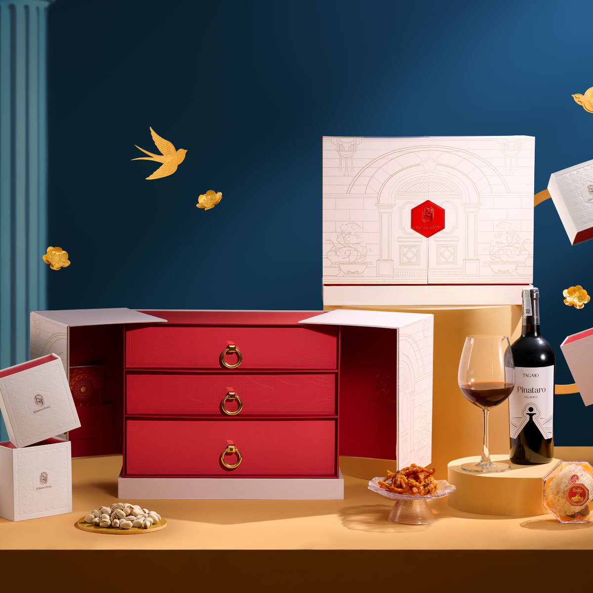 Thiết kế cánh cổng gia đạo mở rộng tượng trưng cho sự đón chào vận khí, kết hợp cùng thượng phẩm Yến Sào bổ dưỡng mang đến lời chúc cho một năm mới Lộc Phúc An Khang, sức khỏe dồi dào.