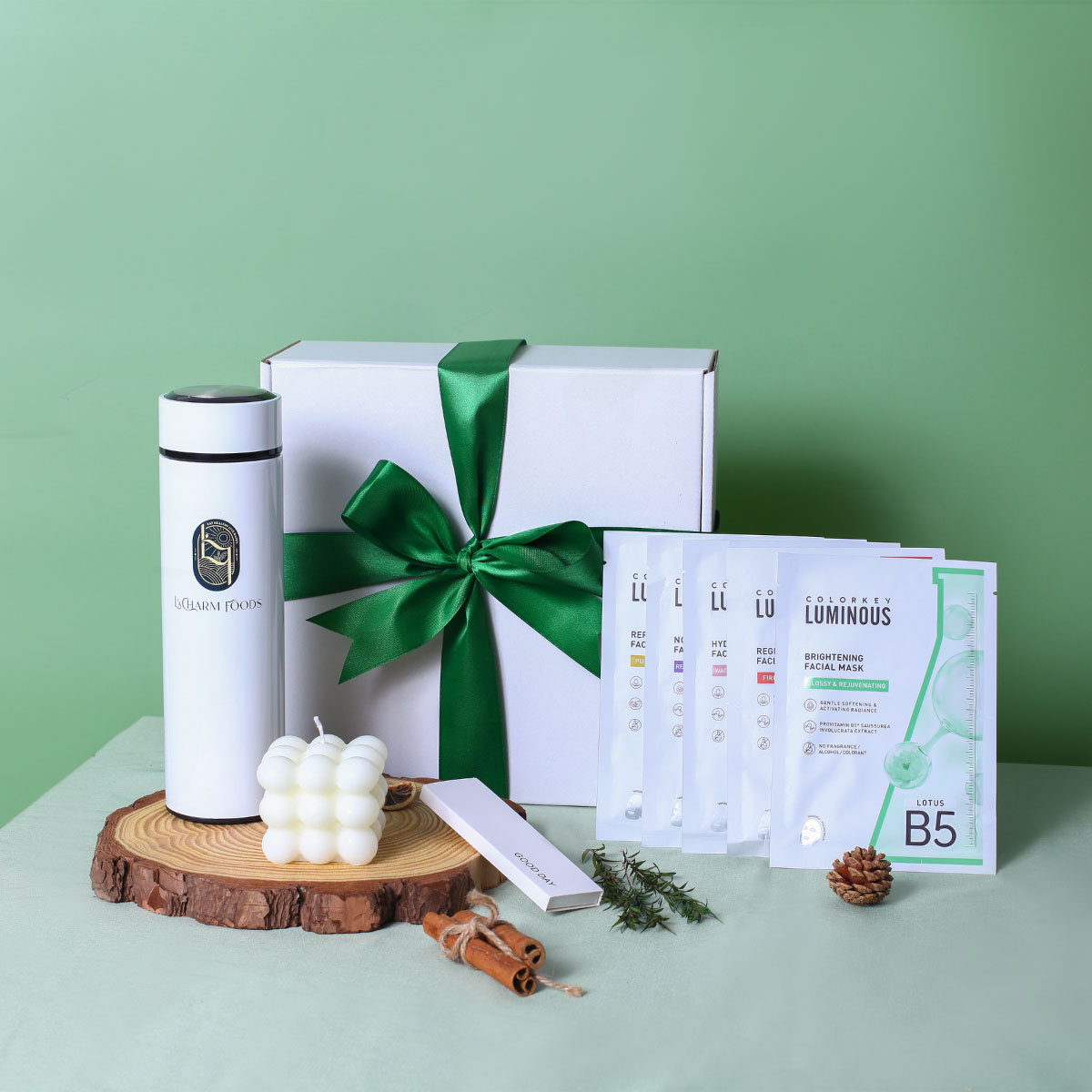 Bình Giữ Nhiệt 300ml | Mặt Nạ Colorkey 5 miếng | Nến Thơm Rubik 160g | Diêm Đốt Nến 1 hộp | Hộp Quà Cao Cấp và Túi Xách Sang Trọng