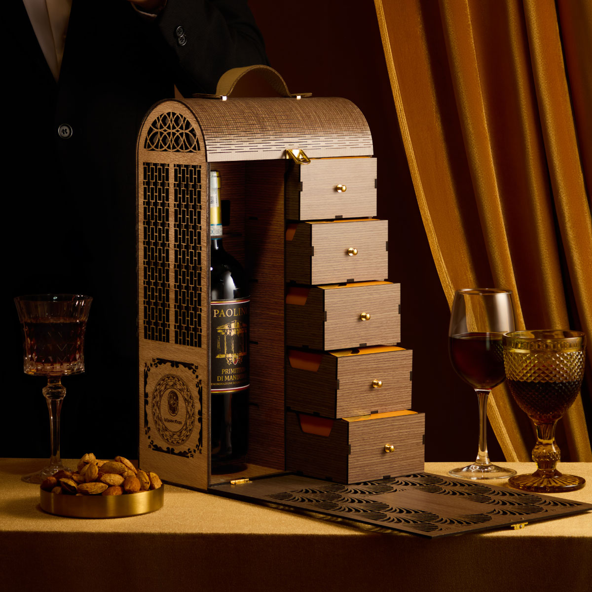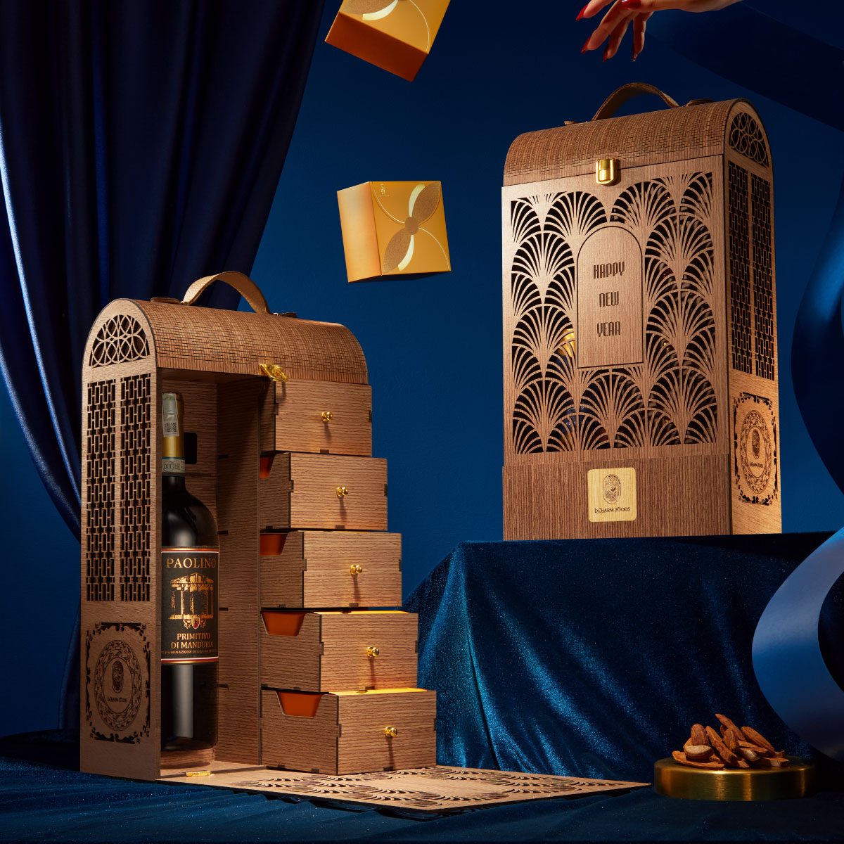 Tuyệt tác gỗ chạm khắc tinh xảo cất giữ bên trong là kho báu của sức khỏe và sự thịnh vượng, khẳng định vị thế độc tôn của chủ nhân với lời chúc một năm mới Xuân Phát Tài, đắc lộc toàn gia, phú quý trọn đời.